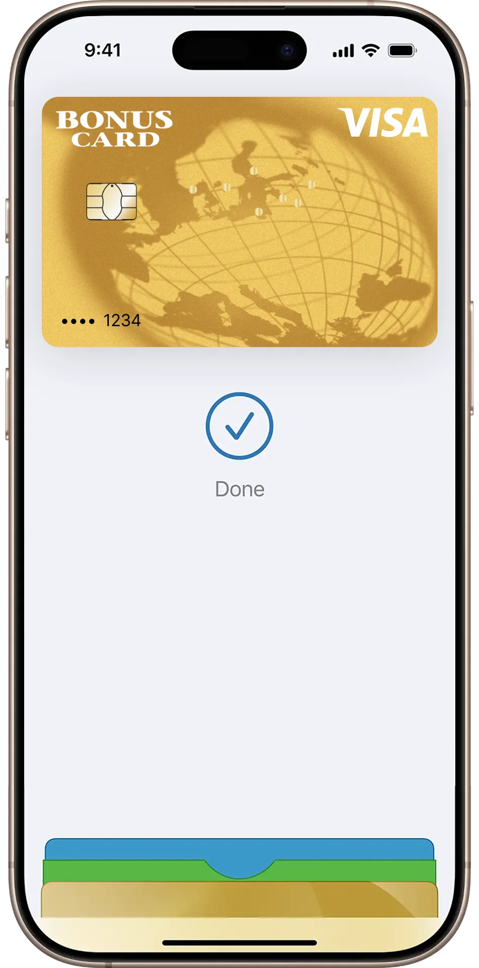 Una volta configurata, la sua carta di BonusCard abbinata ad Apple Pay le permetterà di pagare nei negozi e nelle app in maniera veloce, semplice, sicura e riservata.